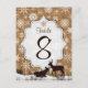 This festive brown FAUX burlap and white snowflakes table number postcard has layers and layers of snowflakes with silhouettes of two deer (a doe and buck) sitting and standing on snow covered hills that match the wedding invitation shown below. ***You must change the number 8 to each number that you need, add it to your cart, and then come back and repeat the process with each number until you have all the individually numbered cards in your cart that you require. Quantity discounts may apply once you add all the items to your cart. If you have any questions or change requests contact niteowlstudio@gmail.com.