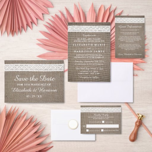 Rustic Burlap & Vintage White Lace Wedding RSVP
