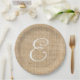 Rustic Burlap Wedding Simple Monogram Paper Plate
