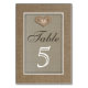 Rustic Burlap Wedding Table Numbers Cards