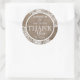 White lace over grunge burlap background elegant modern thank you sticker label.