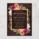 This rustic‑autumn birthday invitation postcard features a rich dark‑wood background adorned with vibrant fall florals in warm shades of burnt orange, deep red, peach, and cream. The bold botanical border creates a cosy, seasonal feel perfect for autumn birthdays, barn venues, outdoor celebrations, or anyone who loves warm rustic aesthetics. Designed as a convenient postcard format, it’s easy to personalise and send — a charming, budget‑friendly option that still feels beautifully elegant.
