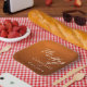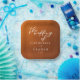 Follow the autumn trend of earthy tones with our burnt orange to brown gradient fall wedding paper plate. Simple white typography on a rustic background for a minimalist look. Bohemian hues reminiscent of terracotta clay highlight your elegant calligraphy on this trendy colour fade textured decor.