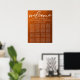 Follow the autumn trend of earthy tones with our burnt orange to brown gradient fall wedding welcome poster with seating chart for up to 16 tables. Simple white typography on a rustic poster for a minimalist look. Bohemian hues reminiscent of terracotta clay highlight your elegant calligraphy on this trendy colour fade sign.