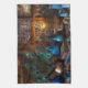 Rustic Cabin by lamplight scene brown blue Tea Towel