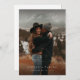 This rustic calligraphy QR code wedding photo save the date combines the charm of a casual country wedding with the elegance of modern design. The front showcases a heartfelt, romantic photo of the couple, set against a serene natural backdrop, perfect for a bohemian or destination wedding. The minimalistic black and white colour scheme, coupled with whimsical calligraphy, adds a timeless touch that’s both chic and sophisticated. On the back, the QR code offers a contemporary way to share wedding details, making this save the date card not only beautiful but also practical for today's couples. This design is ideal for those planning a winter or outdoor wedding who want to announce their special day in a stylish yet understated manner.