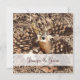 The camo is a combination of pine needles, leaves, and pine cones. These camouflage wedding invitations have a mounted deer head with antlers on both the front and the back of the invitation. The back also has the camo design with a the bride and groom's names. Just add your own wedding invitation wording to these camo wedding invites.