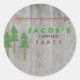 This sticker features pine trees on a rustic wood background. Matching invitations and cupcake toppers are also available at Illustrations by Erin.