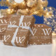 Celebrate the season with this rustic holiday wrapping paper featuring a warm caramel brown background and cream snowflakes. Subtle stars and festive textures add cosy charm while keeping the design elegant and timeless. Designed with room for a monogram and name, it adds a meaningful personal touch to every gift. The seamless vector style keeps lines crisp and clean. Perfect for farmhouse, earthy, or neutral holiday themes.