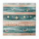 Rustic celestial stripe pattern ceramic tile featuring moon phases, sun symbols, and tribal-inspired details in earthy teal and clay tones. A calm, grounding design ideal for boho lovers, spiritual creatives, and nature-inspired interiors. A thoughtful gift for moon watchers, astrology fans, and earthy souls.