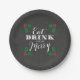 Celebrate the holiday season with festive "Eat, Drink, and Be Merry" paper plates. These beautiful, Christmas plates feature trendy typography, a rustic chalkboard background, and red and green holly berries. The stylish paper plates are perfect to use for Christmas parties and dinners. To give the paper plates a more custom feel, you can add text and more by clicking on the Customise It button.