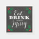 Add a personalised touch to your holiday dinner with festive "Eat, Drink, and Be Merry" paper napkins. The paper napkins feature elegant typography, red and green holly berries, and a rustic chalkboard background. Text can be added to the design by clicking on the Customise It button.