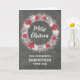 Merry Christmas for godmother card with rustic country chalkboard pattern and snowy wreath with poinsettias.