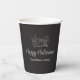 Rustic Fall Happy Halloween Party Paper Cup, with a simple pumpkin on a chalkboard background. With customisable typography lettering, you add your own text. A fun addition to your autumn holiday party and entertaining.