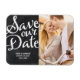 This lovely vintage-style photo save the date features "Save our date" written in gorgeous calligraphy against a chalkboard background. Customise with your wedding details and favourite photo.