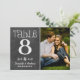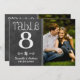 Elegant rustic chic custom wedding table cards can be personalised with an engagement photo of the bride and groom. Design features white handwritten script table number and monogram text of the bride and groom's name and wedding date on a rustic black chalkboard style background with scroll design accents. To customise: type in the table number, click "change" by the default photo to upload your own photo, and add that individual table number card to your shopping cart. Repeat for all of the table numbers that you need.