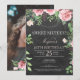 Rustic elegant sweet 16 birthday party photo invitation with blush pink and red burgundy hand painted peony roses with green leaves and foliage and with a trendy chic hand lettered editable calligraphy script over a dark grey charcoal chalkboard background. +++++++++++ Suitable for a spring, summer garden or autumn fall / outdoor backyard / vintage floral sixteenth birthday party .
