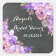 Bridal Shower favour tag stickers in rustic country chalkboard pattern with purple vintage watercolor wildflowers. A great way to decorate wedding shower favours.