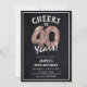 Celebrating turning 40! These 40th birthday party invites are designed with the title 'Cheers to 40 Years!'. Featuring a rustic chalkboard background, rose gold number forty helium balloons, trendy white typography and a simple birthday party template that is easy to customise.
