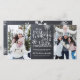 Beautiful typography based holiday photo card features a family photo. "It's the most wonderful time of the year" appears in white hand-lettered typography on a charcoal grey chalkboard background accented with white snowflakes. Customise the card with your personal greeting, family name along with individual names. On the back, the card showcases a snowflake pattern with a light grey background.