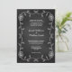 Rustic chalkboard wedding invitations with border of sunflowers and vines, on a black chalkboard background. Cute hand drawn chalk style image is perfect for your rustic theme wedding. Get the matching chalkboard wedding RSVP cards.