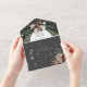 AVAILABLE WITH OR WITHOUT A QR CODE TO SCAN OR WITH DINNER SELECTION OPTIONS. Capture the magic of winter with our enchanting invitation. Featuring a dramatic charcoal black backdrop adorned with a breathtaking pine and pinecone bouquet, accented by delicate white blooms and a sparkling overlay, this design is the epitome of winter wonderland elegance. Perfect for a Christmas or winter-themed wedding, this invitation will leave your guests eagerly anticipating your special day. Created by Simply Farmhouse Press.