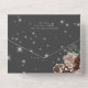 AVAILABLE WITH OR WITHOUT A QR CODE TO SCAN. This design features a rustic green pine and pinecone bouquet on a soft charcoal black background with white flowers. It is accented with a white sparkle overlay to illustrate the magic of the beautiful winter holidays. Perfect for a Christmas or winter wedding. Personalised All-In-One invitations are a unique combination of both a beautifully printed custom invitation with an easy to tear off perforated RSVP postcard. And they are so easy to use! You simply fold, then seal the back flap with the three included clear stickers, and mail. And when your guests receive your custom invite, they just tear the perforated RSVP Card off and drop it back in the mail to you!