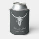 Rustic Charcoal Grey White Western Cow Skull Can Cooler