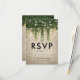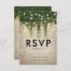 Magical fairytale wedding rsvp cards featuring a rustic stone brick wall background, green ivy vine with sparkling twinkle lights, and a modern response template.