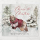 Celebrate the Christmas season with custom sparkling wine labels personalised with your name or other desired text. This design features a snowy winter scene with a large grizzly bear wearing a deep red woollen sweater out in the cold snowy landscape. Fir trees covered in snow depict a winter wonderland. A lovely vintage style typeface spells out the words "Cheers to Christmas". These labels are a wonderful choice for creating personalised gifts for friends, neighbours, family, customers and business colleagues. It makes a thoughtful hostess gift for attending holiday parties or dropping in on friends and family during the Christmas holiday season.