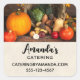 Business stickers with a photograph of a thanksgiving harvest, set on a rustic wooden table. Pumpkin, potatoes, squash etc... make up this bountiful collection of food. Colourful autumn leaves surround the cornucopia basket.