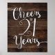 Rustic Chic CHEERS TO 21 YEARS Sign Print