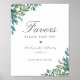 Rustic watercolor green and blue forest foliage, personalised wedding "Favours" sign poster. Modern typography design style mixes script with bold type.