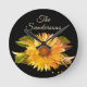 Rustic Chic Golden Yellow Sunflower Round Clock
