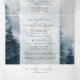 A rustic chic and minimalist design featuring an illustration of the mountains with pine trees as a backgorund. This all-in-one sustainable invitation would save you money, no need to include RSVP envelopes, your guests will cut the last panel and mail it back to you as a postcard.