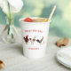 Cute and rustic farm theme birthday party paper cup featuring watercolor illustration of chickens and chick.