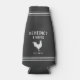 These cool personalised bottle coolers feature your family name or farm name on a charcoal grey background, with your year established and a chicken illustration. Rope stripe detailing at the top and bottom completes the design for a rustic farmhouse style look.