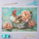 Bring farmhouse elegance to your crafting projects with this captivating decoupage tissue paper design. It features a golden-brown chicken resting in a vintage wire basket lined with delicate white lace, surrounded by lush coral peonies. The serene turquoise floral background adds a touch of charm and sophistication, making this design perfect for weddings, rustic-themed events, gift wrapping, or DIY crafts. A blend of country warmth and artistic detail, this unique tissue paper is an ideal choice for adding a luxurious and personalised touch to any project.