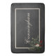 This design is simple, yet makes a statement, with it's monogram family name in creamy white on a soft black background. A creamy white frame is decorated with a rustic bouquet of pine, cream white and red berries, and holly leaves. This bath mat welcomes your holiday and Christmas guests in beautiful understated style. Created by Simply Farmhouse Press.