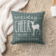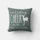 Rustic Christmas Blue Buffalo Plaid Throw Pillow - with hand lettered text that reads "holiday Cheer" with a deer and personalised with your family name. A perfect addition to your country Christmas decor. Pillow is part of a collection.