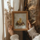Hand-painted with intricate details, this piece captures the essence of a traditional Christmas scene. The soft, warm tones and realistic textures will complement any rustic or vintage holiday decor. Whether displayed on a mantel, wall, or as part of a seasonal gallery, this artwork is sure to be a cherished part of your holiday celebrations for years to come.