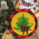 Rustic red and black buffalo plaid pattern paper plates featuring Christas tree and Cat festive decor for cats lovers.