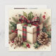 Capture the rustic, Christmas spirit with this unique, square, holiday card of a pretty box wrapped with a coquette, plaid bow, surrounded with holly and pine cones. Templates provided with image on back.