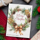 Rustic Christmas Dried Floral Pinecone Wreath Holiday Card
