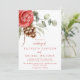 Celebrate your winter wedding with this festive Christmas-themed invitation, featuring a watercolor red rose, pinecone, and eucalyptus greenery. The bold red script and seasonal floral arrangement create a warm and rustic feel—perfect for holiday weddings and cosy winter ceremonies. Fully customisable to include your wedding details and make it truly yours.