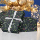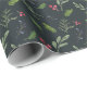 Custom-designed Christmas wrapping paper featuring rustic Christmas greenery and red berry design on dark navy colour background.