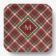 Rustic Christmas Monogram Name Red Green Plaid Paper Plate