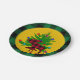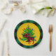 Rustic Christmas Moose, Tree, Green Buffalo plaid Paper Plate