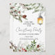 Invite guests in festive style with this rustic Christmas party invitation featuring watercolor greenery, pinecones, red berries, and a warm vintage lantern. Perfect for cosy winter gatherings, office parties, or family celebrations. Easily personalise with your event details to create a charming seasonal invite.