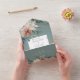 AVAILABLE WITH OR WITHOUT A QR CODE. This design features green pine sprigs, red berries, white poinsettias, and holiday greenery on a Christmas light green background. A monogram on the back envelope flap completes the simple but elegant look of this all in one invitation. Add a QR code to your invitation so that gusts can quickly access your wedding Website for details, directions, menu options, and more, or add your gift registry Web URL. Personalised All-In-One invitations are a unique combination of both a beautifully printed custom invitation with an easy to tear off perforated RSVP postcard. And they are so easy to use! You simply fold, then seal the back flap with the three included clear stickers, and mail. And when your guests receive your custom invite, they just tear the perforated RSVP Card off and drop it back in the mail to you!